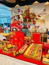 Bàn tiệc cho 50 khách được phủ đầy với 11 món ngon đa dạng từ bánh ngọt xinh xắn đến món mặn chắc dạ. Một chút truyền thống pha với một chút hiện đại, một chút "ăn chơi" nhưng cũng đủ "ăn no". Tất cả tạo nên một bản giao hưởng hương vị đầy thú vị. Khách vừa thưởng thức vừa ríu rít chụp hình check-in, ai nấy cũng đều khen: "Không chỉ ngon mà nhìn cũng xinh hết nấc!"