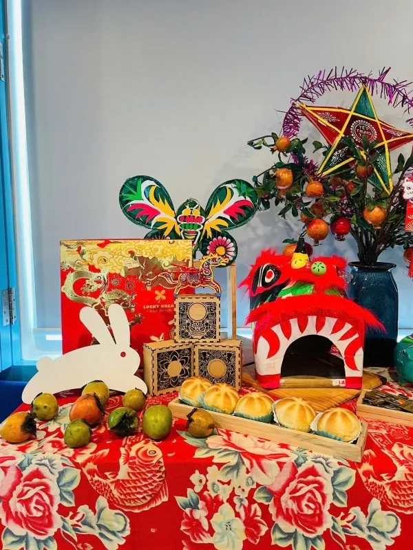 Một buổi chiều tháng Tám, văn phòng Ignition Group bỗng hóa thành bức tranh Trung Thu xưa. Có chiếc đèn giấy, đèn lồng ông sao, vài nhành lựu đỏ đặt cạnh những khay bánh đầy sắc màu. Và ở một góc nhỏ nào đó, có chiếc đầu lân rực rỡ nằm bên chú heo đất cũ, tất cả như đưa mọi người trở về tuổi thơ những ngày háo hức rước đèn phá cỗ.