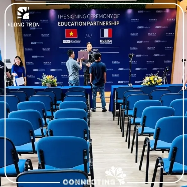 Nếu buổi lễ là cánh cửa mở ra hợp tác đào tạo quốc tế, thì bàn tiệc finger food chính là nhịp cầu nối, giúp khách mời dễ dàng tìm thấy điểm chung qua những phút giây chia sẻ bên ly nước, miếng bánh. Một chi tiết tưởng chừng nhỏ nhưng đã góp phần giữ cho buổi ký kết vừa trang nghiêm vừa gần gũi, vừa chuyên nghiệp vừa ấm áp.