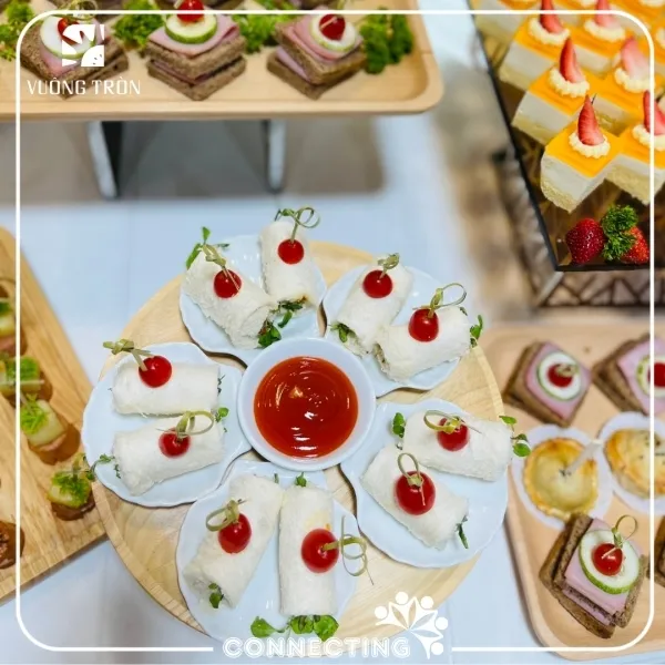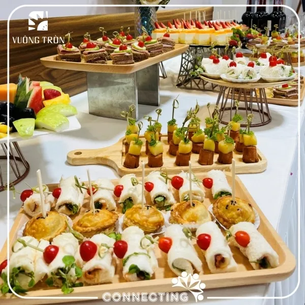 Một buổi lễ ký kết, một hội thảo quốc tế hay đơn giản chỉ là buổi gặp gỡ thân mật. Bàn tiệc finger food chỉn chu sẽ luôn tạo ấn tượng tốt đẹp. Hãy để Vuông Tròn giúp bạn chăm chút từng chi tiết để sự kiện thêm trọn vẹn. Liên hệ ngay nha!