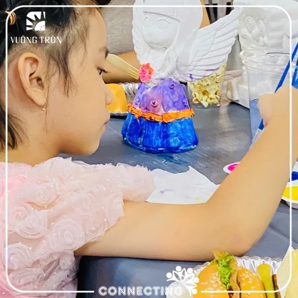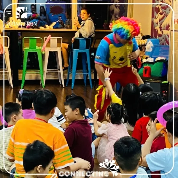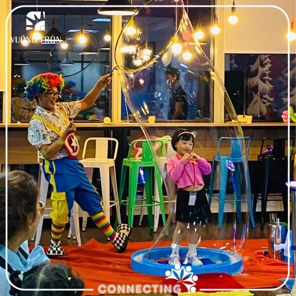 Không khí bữa tiệc rộn ràng như một lễ hội mini: các bé tung tăng chạy nhảy, háo hức nô đùa cùng chú hề qua những trò chơi, tay cầm những cốc kem đầy màu sắc, vừa cười vừa khoe nhau phần topping mà mình chọn. Người lớn cũng hòa mình, vừa thưởng thức những món mặn thơm lừng từ bàn tiệc teabreak, vừa bất giác lấy điện thoại ghi lại khoảnh khắc các con hồn nhiên tận hưởng.