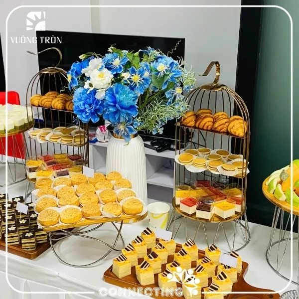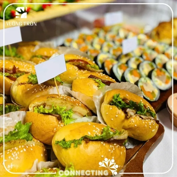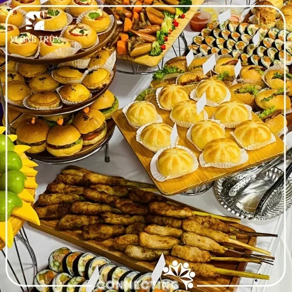 Menu tiệc teabreak 9 món đậm đà, đầy đủ món ăn no bụng với hương vị từ Đông sang Tây, vừa đủ chắc bụng mà vẫn thoải mái di chuyển, trò chuyện như: