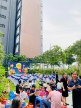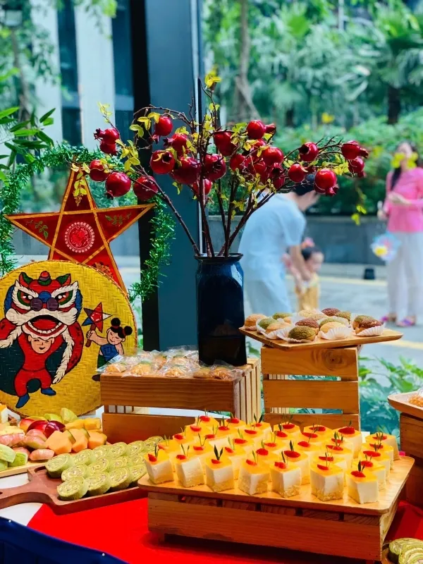 Được trang trí với những phụ kiện quen thuộc thời thơ ấu: đèn ông sao, chùm lựu đỏ... đầy bắt mắt. Dự kiến tiệc chỉ dành cho khoảng 20 khách, nhưng niềm vui lan tỏa đến hơn 100 cư dân. Bánh ngọt hết nhanh, nước uống cũng nhanh chóng cạn, nhưng không ai bận tâm, bởi điều đọng lại chính là tiếng cười giòn tan của trẻ nhỏ, những câu chuyện hàn huyên của người lớn, và cùng nhau "trông trăng" như những mùa Trung Thu năm xưa.