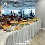Từ những món bánh mặn vừa đủ no, giúp khách hàng nạp năng lượng nhanh. Đến những chiếc bánh ngọt tạo cảm giác dễ chịu, cân bằng vị giác. Và hành trình hương vị khép lại bằng sự thanh mát của trái cây và nước ép tươi. Mỗi chi tiết đều được chăm chút kỹ lưỡng để tất cả cùng hòa quyện, tạo nên bàn tiệc sáng bừng trong gam màu tươi mới, vừa đủ tạo điểm nhấn hiện đại mà không mất đi sự tinh tế. Để khách hàng AIA có thể vừa nghỉ ngơi, vừa thư giãn, vừa nạp năng lượng sau hành trình khám sức khỏe.