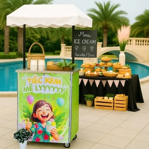 - Quầy kem mát lạnh cho bé tự tay múc mời bạn đáng yêu vô cùng