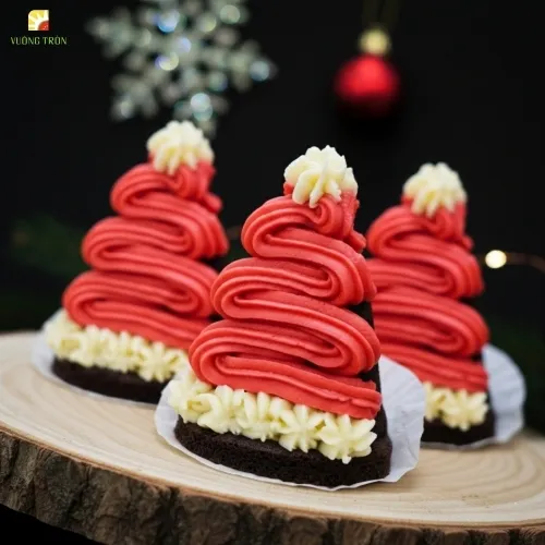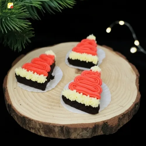 - Hình dáng: Bánh brownie mini hình mũ Noel