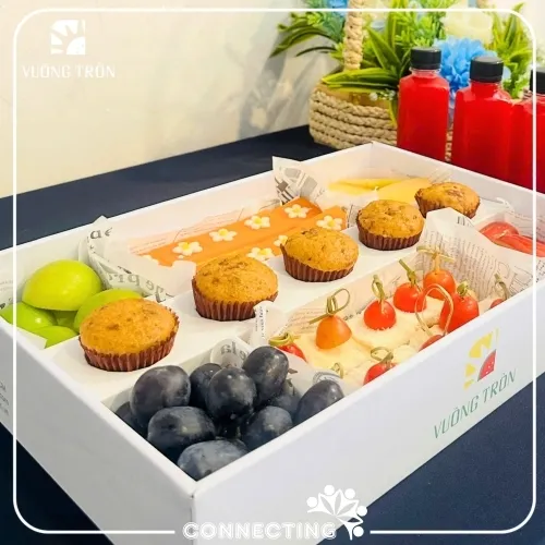 Combo Simple 1 là set tiệc mang đi được Trái Cây Vuông Tròn thiết kế dành riêng cho nhu cầu họp hành nhanh, họp nhóm nội bộ, brainstorming hoặc hội thảo nội bộ. Set tiệc này giúp tiết kiệm thời gian chuẩn bị mà vẫn đảm bảo một phần ăn đầy đủ, lịch sự và chuyên nghiệp.
