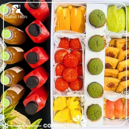 Simple 2 là set tiệc mang đi được Trái Cây Vuông Tròn thiết kế dành riêng cho các buổi đào tạo nhân sự, training kỹ năng hoặc workshop nội bộ. Set này giúp học viên vừa có trải nghiệm ăn uống gọn gàng, vừa duy trì năng lượng xuyên suốt chương trình mà không cần tốn thời gian chuẩn bị.
