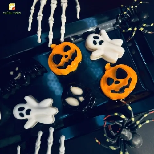 Rau câu Halloween là món tráng miệng được Vuông Tròn sáng tạo riêng cho mùa lễ hội tháng 10. Với những tạo hình sinh động như ma nhỏ, bí ngô, dơi,... món rau câu không chỉ ngon miệng mà còn giúp bàn tiệc Halloween trở nên bắt mắt và hấp dẫn với cả trẻ em lẫn người lớn.
