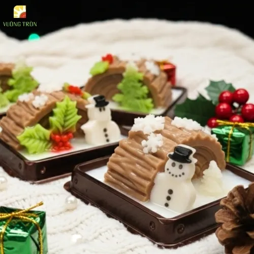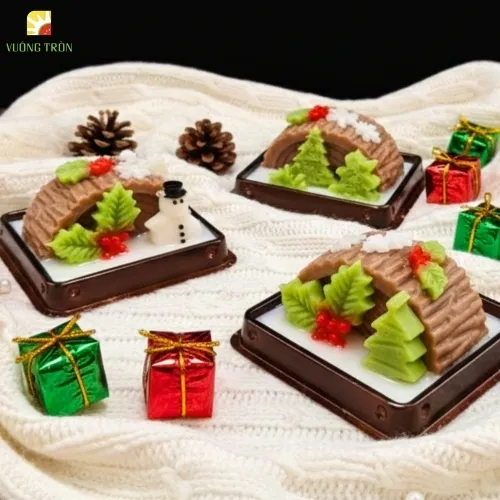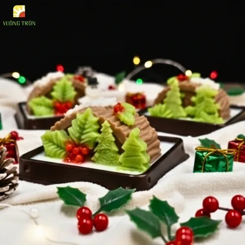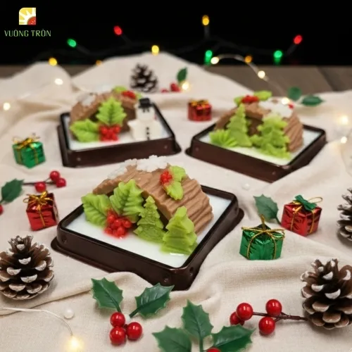 Rau câu Noel là món tráng miệng mùa lễ hội được Vuông Tròn sáng tạo riêng cho không khí Giáng Sinh. Với những tạo hình dễ thương như cây thông, người tuyết, hộp quà, ngôi sao… món rau câu không chỉ ngon miệng mà còn giúp bàn tiệc Giáng Sinh trở nên sinh động, ấm áp và thu hút cả trẻ em lẫn người lớn.