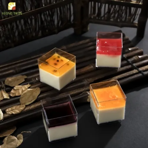 Đây là món ăn tráng miệng thích hợp dùng cho các bữa tiệc sang trọng, tiệc hội nghị, đãi khách sự kiện, hội nghị.... Pana cotta tại Vuông Tròn có 4 hương vị cho khách hàng lựa chọn: dâu, chanh dây, việt quốc.