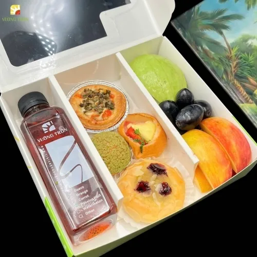 Teabreak box trọn vị gồm đầy đủ bánh, nước, trái cây cực fresh, phù hợp cho những sự kiện cần tiệc tự phục vụ healthy, nhanh gọn.
