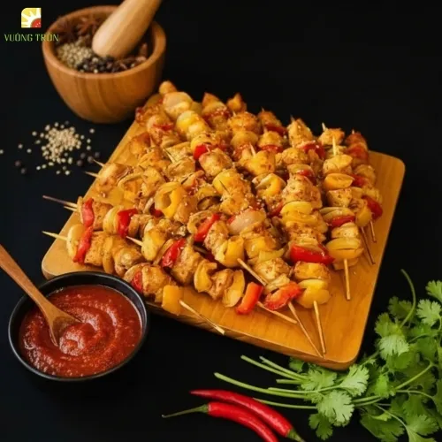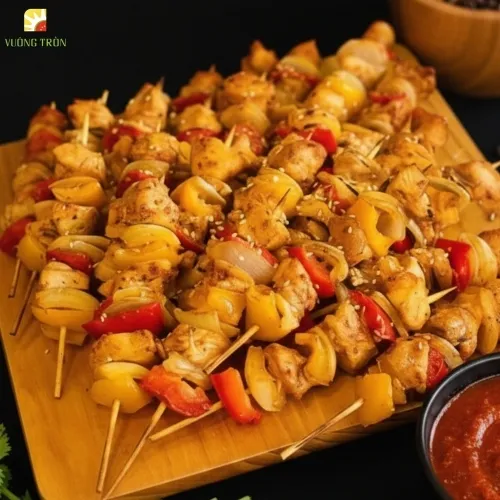 Ức gà xiên que + ớt chuông