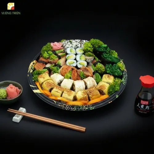Set sushi tổng hợp với các nguyên vật liệu khác nhau theo mùa các loại size 25cm, số lượng 37 - 40 viên tùy loại