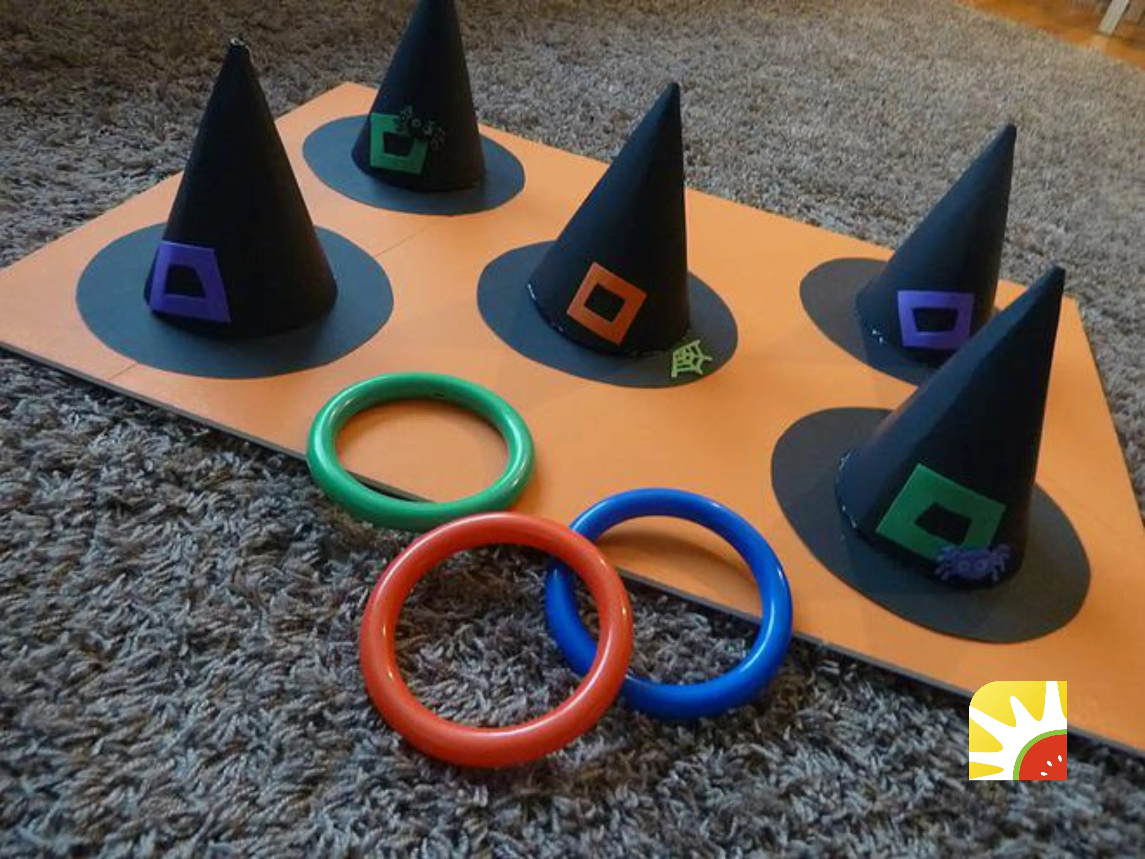 Chiếc mũ nhọn của mụ phù thủy đã quá quen thuộc trong mùa Halloween, nhưng nếu biến nó thành mục tiêu cho trò chơi “ném vòng phép thuật” thì sao? Trong trò chơi này, mỗi bé sẽ trở thành một phù thủy nhí đang thử sức với khả năng điều khiển phép thuật của mình.