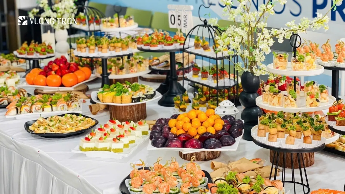 - Chọn nhà cung cấp uy tín: Đồ ăn tươi ngon, giao đúng giờ, hỗ trợ set-up đầy đủ sẽ ảnh hưởng trực tiếp đến trải nghiệm của buổi tiệc.