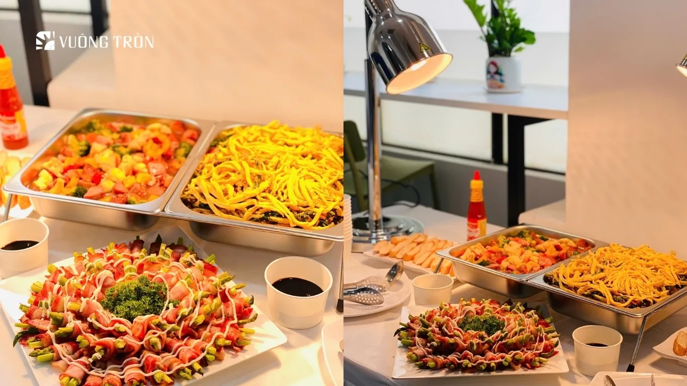 Tiệc kết hợp là hình thức gộp nhiều nhóm món ăn vào cùng một bàn tiệc để đáp ứng khẩu vị đa dạng trong văn phòng. Đây là lựa chọn linh hoạt, đặc biệt phù hợp khi trong công ty có người ăn chay, ăn kiêng hoặc sở thích không đồng nhất.