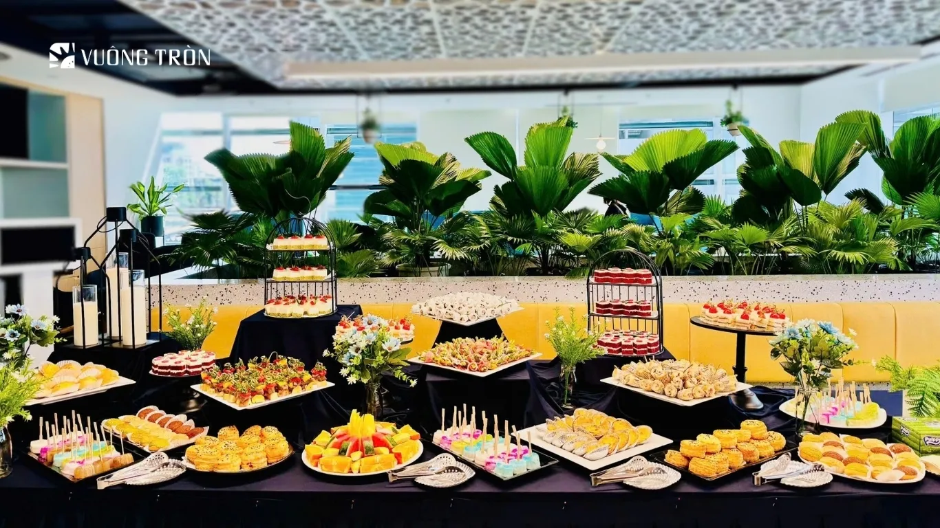 Có 8 loại tiệc văn phòng phổ biến hiện nay gồm: Finger Food, Canapé, Teabreak, Tiệc mặn, Buffet, Cocktail/Mocktail, Tiệc kem và Tiệc kết hợp. Các loại tiệc này được giới công sở ưa chuộng bởi tính linh hoạt khi áp dụng của nó. Tùy vào mục tiêu tổ chức, mức độ trang trọng và ngân sách của từng doanh nghiệp sẽ có những hình thức tiệc phù hợp. Vậy mỗi loại hình có những đặc điểm nào? Hãy cùng Vuông Tròn khám phá các loại tiệc tại văn phòng công ty qua bài viết sau đây nhé!