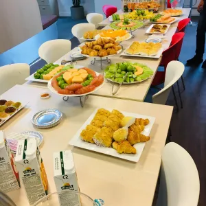 Thực đơn cho bữa tiệc sinh nhật công ty hình thức này có thể kể đến: các loại trái cây thanh mát, rau câu đủ vị ngọt diệu, các loại bánh ngọt được ưa chuộng trên thị trường như tiramisu, bánh tart, cupcake, pancake, … và các loại bánh mặn với hương vị đa dạng như sandwich, hamburger, bánh mì thịt xông khói, bánh kẹp, hotdog,...