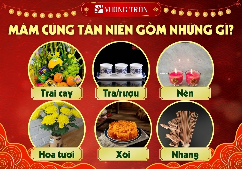 Một mâm cúng tân niên công ty theo cách làm phổ biến hiện nay thường gồm: