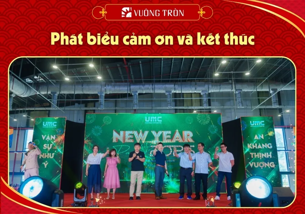 Kết thúc bài phát biểu sẽ là lời cảm ơn chân thành từ phía ban lãnh đạo. Cảm ơn những vị khách mời đã đến tham dự cùng với công ty. Và cả lời cảm ơn chúc mừng năm mới đến với mọi người.