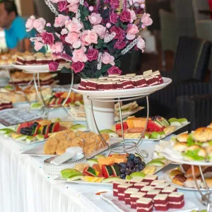 Tiệc ngọt: các món ăn vừa no vừa ngon trong tiệc ngọt hiện nay rất đa dạng như bánh ngọt, tiramisu, tart trứng, bánh mặn, bánh chà bông trứng muối, bánh sandwich,... Thêm vào đó còn kèm trái cây thanh mát, rau câu ngọt dịu, nước ép trái cây tươi mọng,.. cho mọi người cùng nhâm nhi, giao lưu nói chuyện với nhau thêm xôm tụ.
