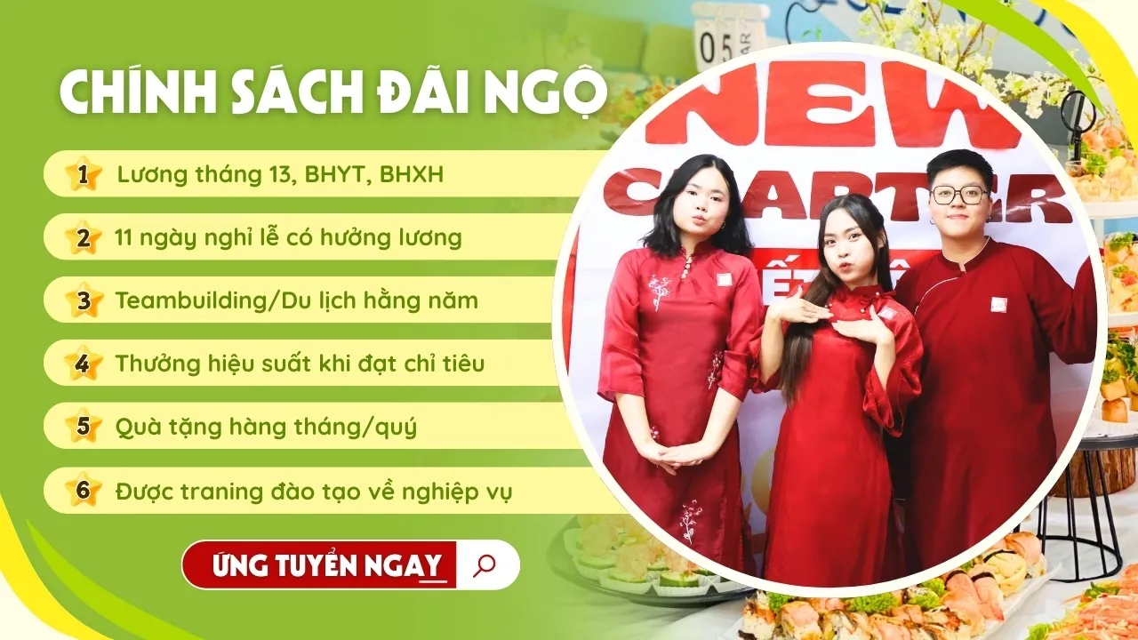 - Ưu tiên có kinh nghiệm ngành F&B, có khả năng sáng tạo nội dung tốt, tư duy hình ảnh tốt, bắt trend.