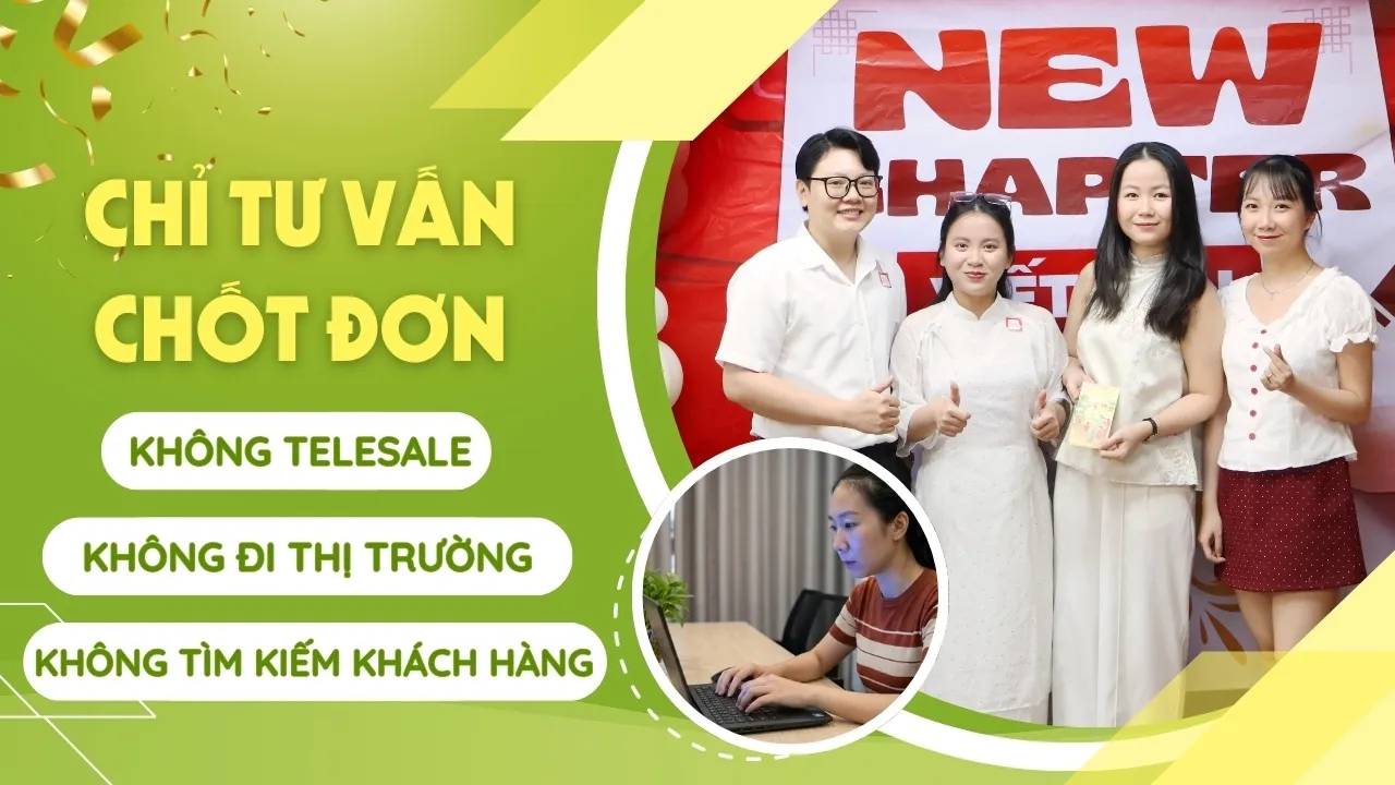 Với vị trí này, bạn chỉ cần tư vấn chốt đơn, KHÔNG CẦN TÌM KIẾM KHÁCH HÀNG MỚI (không telesale, không đi thị trường, không đi công tác gặp gỡ khách hàng, không cần tìm kiếm khách online).