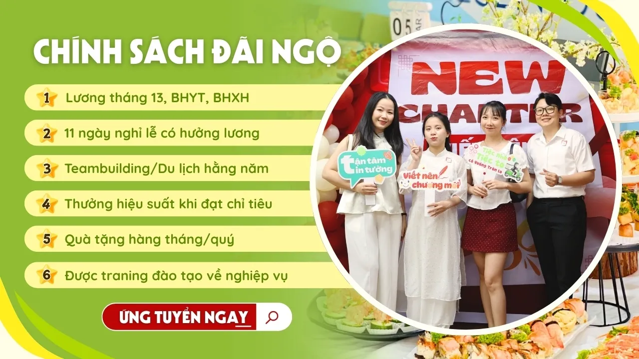 Không yêu cầu kinh nghiệm, ưu tiên ứng viên yêu thích công việc tư vấn chốt đơn và linh hoạt, không ngại thay đổi.